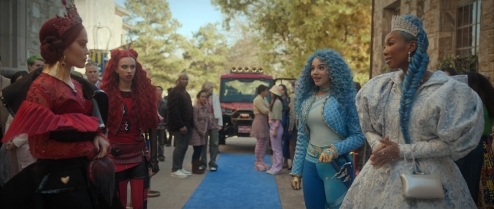 - ↑ Descendants: The Rise of Red, 25:39-33:38 – During the Welcome Day at Auradon Prep, the Queen of Hearts begins a coup, implicating Red in it.